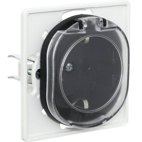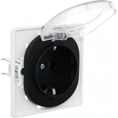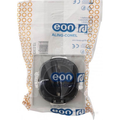 Розетка с заземлением с поликарбонатовой вставкой и крышкой Aling Conel серии EON. Цвет "Черный" (E633.E1)