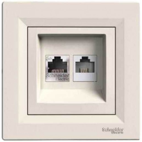 Розетка двойная телефонная RJ11 + компьютерная RJ45 Asfora кремовая (EPH4900123)