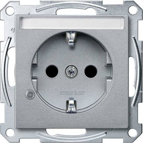 Механизм розетки с индикацией и полем для надписи Merten Shuko, 2 полюса, 16А Алюминий, MTN2303-0460