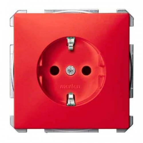 Механизм розетки с защитными шторками, заземлением и накладкой Merten Shuko, 2 полюса, 16А Рубиновый, MTN2300-0306