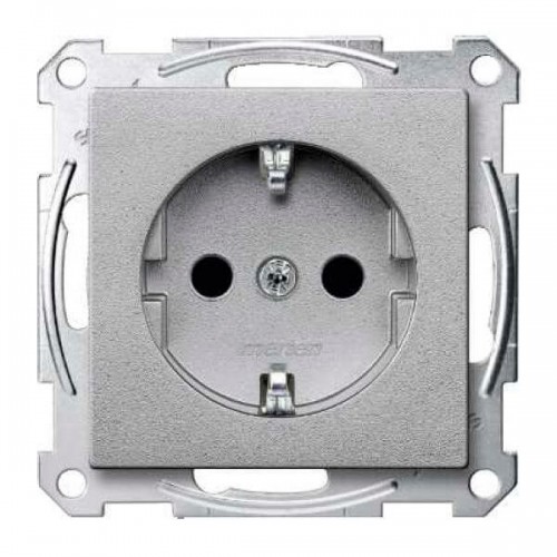 Механизм розетки с заземлением и накладкой Merten Shuko, 2 полюса, 16А Алюминий, MTN2301-0460