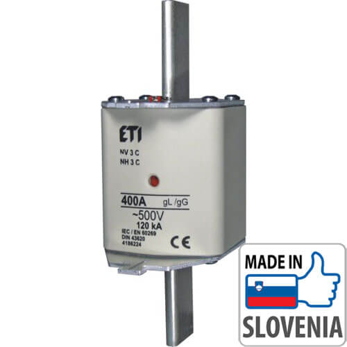 Наш интернет-магазин электротехники предлагает Вам купить ножевой предохранитель NH3C KOMBI на 300А с характеристикой срабатывания gL/gG для защиты линейных цепей от короткого замыкания и перегрузки производства Словенского электротехнического концерна «ETI» со склада в Харькове. Словенский концерн «ETI» вот уже более 65 лет общепризнанный европейский лидер в производстве предохранительного оборудования. Ножевой предохранитель NH3C KOMBI на 300А с характеристикой срабатывания gL/gG предназначен для установки в держатели PK3 производства «ETI» и разъединители «APATOR» серии RBK3 и ARS3, которые Вы так же сможете найти в нашем интернет-магазине. Ножевой предохранитель NH3C KOMBI на 300А обладает двойным индикатором срабатывания. Они оба сработают одновременно в момент перегорания плавкой вставки. Визуальный контроль срабатывания предохранителя таким образом осуществляется как в держателе, так и в разъединителе. Гарантия на предохранители NH3C - 1 год. В нашем интернет-магазине электротехники «eco-system.com.ua» Вы сможете найти и приобрести большой ассортимент предохранителей и держателей к ним производства компании «ETI» и «APATOR» с официальной гарантией в Украине.