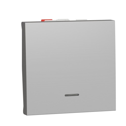 Переключатель одноклавишный с нейтралью 10А 2 модуля Unica New алюминий (NU320330S)