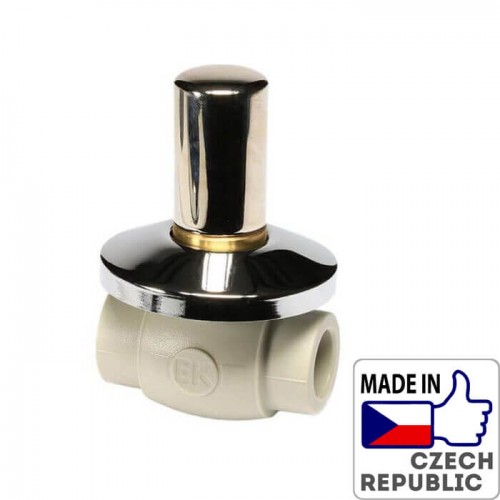 Наш интернет-магазин располагает широким выбором PPR фитингов и предлагает Вам купить PPR шаровый кран под штукатурку с металлической хромированной крышкой под трубу 20мм для систем водоснабжения и отопления со склада в Харькове. Он предназначен для перекрывания трубопровода с управлением над уровнем поверхности строительной конструкции, с хромированной крышкой из металла.