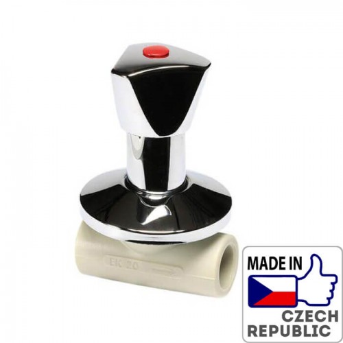 PP-R Вентиль под штукатурку проходной с металлической рукояткой под трубу 20мм, Wavin Ekoplastik, SVEPLR020X