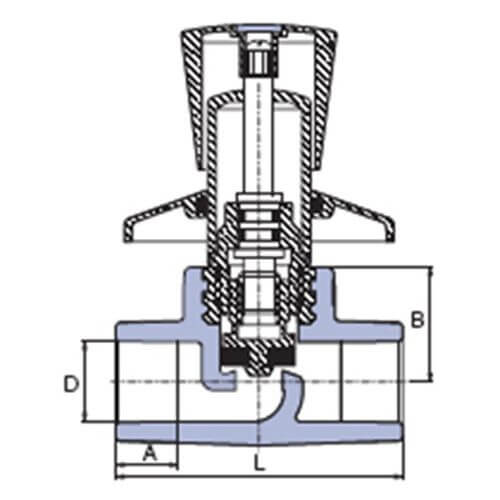 PP-R Вентиль под штукатурку проходной с металлической рукояткой под трубу 20мм, Wavin Ekoplastik