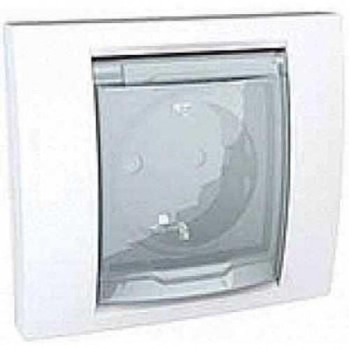 Силовая розетка с заземлением со шторками (с защитой от детей) и прозрачной крышкой с рамкой IP44 Unica Class
