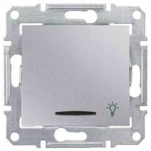 SDN1800160 Кнопочный выключатель с символом свет и подсветкой 10A серии Sedna. Цвет Алюминий
