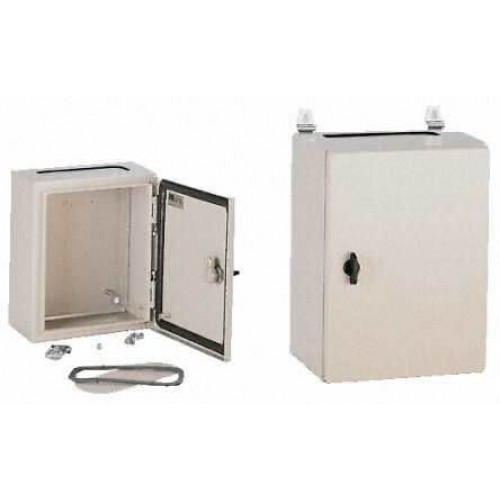 Стальной распределительный шкаф со степенью защиты IP66 предназначен для установки как в помещениях, так и на улице. Боковые панели выгнуты из цельного листа. Задняя панель крепится к боковым панелям с использованием специального профиля, обеспечивающего пыле- и влагонепроницаемость. Наружная и внутренняя поверхности шкафа покрыты текстурированной эпоксидно-полиэфирной эмалью серого цвета.