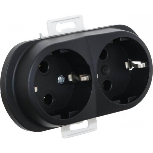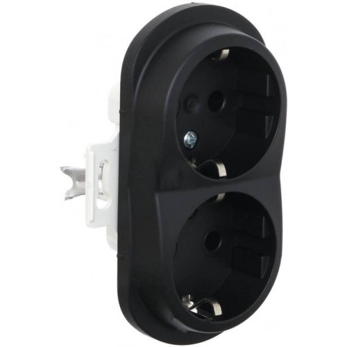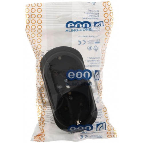 Розетка подвійна з заземленням Aling Conel серії EON. Колір "Чорний" (E604.E1)