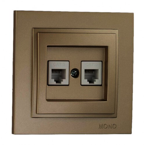 Розетка телефонна Євро подвійна (2xRj11 Cat 3) серії Despina (Mono Electric). Колір Бронза