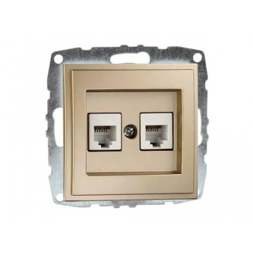 Механізм подвійної телефонної розетки цифрової (RJ11 CAT3A) серії Despina (Mono Electric) Кремова з панелью