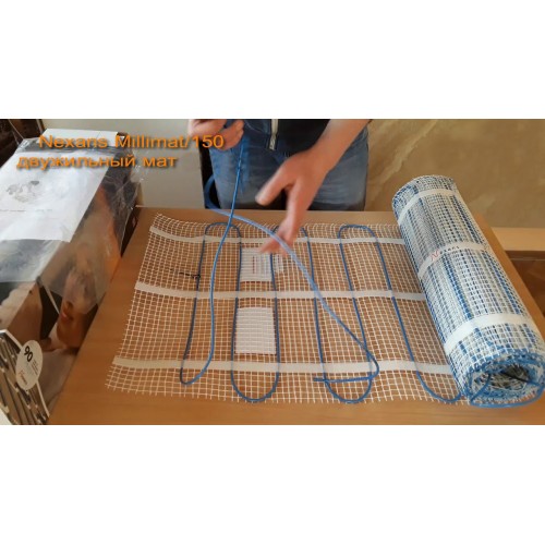 Нагрівальний мат Nexans Millimat/150 (000000950) 1500 Вт, 10.0 м² — являє собою досить тонку конструкцію гнучкої і тонкої скло-волоконної сітки з клейкою основою, в яку вплетений двожильний кабель з алюмінієвою захисною трубкою.