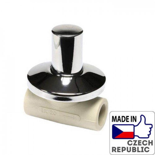 Наш интернет-магазин располагает широким выбором PPR фитингов и предлагает Вам купить PPR вентиль под штукатурку проходной с металлической хромированной крышкой под трубу 25мм для систем водоснабжения и отопления со склада в Харькове. Он предназначен для перекрывания трубопровода с управлением над уровнем поверхности строительной конструкции.