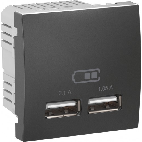 USB-розетка Unica Schneider Electric 2.1 A (2 входи). Колір "Графіт"