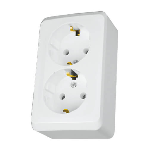 Изделия для открытой установки имеют заднюю монтажную пластину, обеспечивающую безопасность при установке и эксплуатации на электропроводящих поверхностях. Металлические части механизма закрыты пластиком, контакты полностью изолированы.