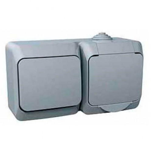 Комбинированный наружный блок розетка + выключатель 16A IP44 Cedar Plus. Цвет Серый