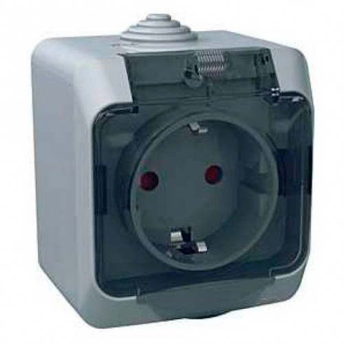 Одинарная наружная розетка с заземлением и защитной крышкой 16A Cedar Plus серая (WDE000643)